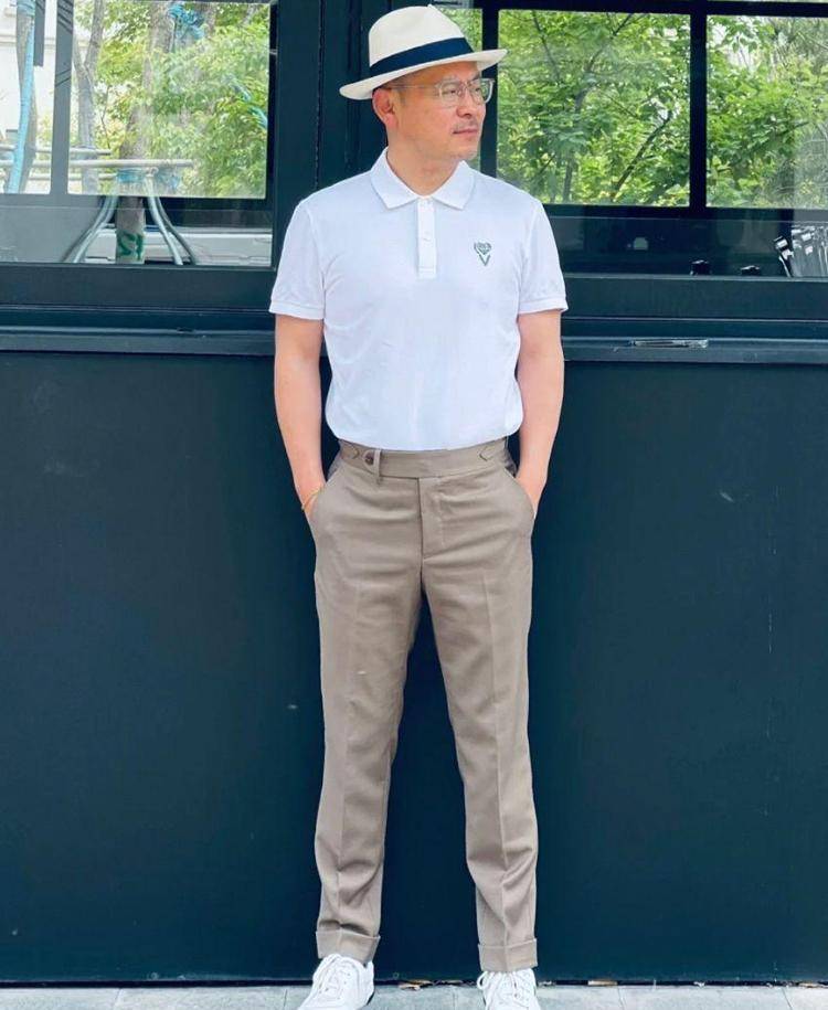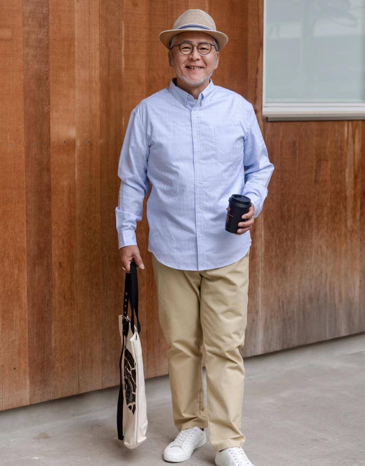 男人,60-70岁,想用裤子改变腿型,让腿更长。他选择的长度应该是九分,应该适当增加脚踝的暴露面积,强调纤细的部分,打造出更显瘦、腿更长的效果。而且九分裤的适应性也很高。无论搭配低帮鞋还是中高鞋,都能凸显脚踝,凸显身形。